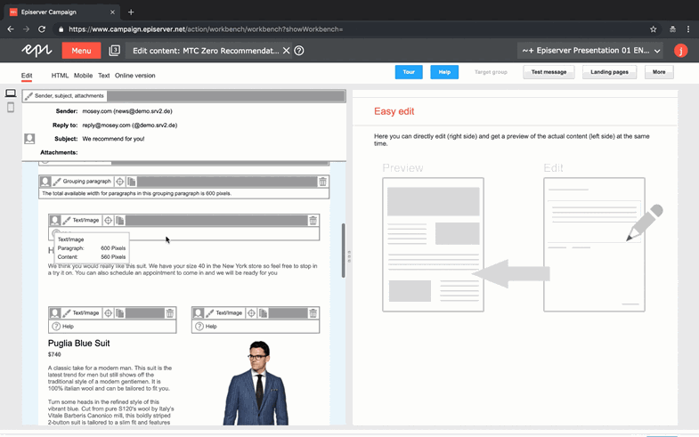 - Personalization and targeting - Personalized product recommendations offer enormous potential. Send mailings that are prompted by a purchase, a registration or a similar action, with contents automatically adapted accordingly. Act upon the insights gained from the attention analytics to ensure your higher-quality or higher-prices goods are located in the best spot to aim to drive a greater Average Order Value